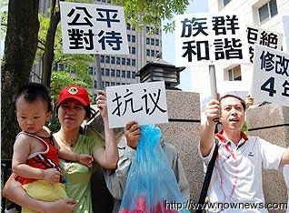 大陸配偶在臺權(quán)益遭受歧視,臺灣一團(tuán)體組織12日前往“立院”抗議,要求公平對待同時為大陸配偶爭權(quán)益。圖片來源:臺灣“今日新聞”