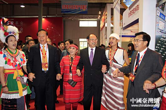 展區內,臺灣參展單位也是使出渾身解數,各顯特色。臺北市依然貫穿“臺北好精彩”的主題,似在從南到北的強化大陸民眾對這一品牌的印象;來到澎湖展臺不用看,聽一首《外婆的澎湖灣》就足以讓人無限遐想;高雄的愛河則讓無數年輕人向往;而這其中最吸引人眼球的還是屏東縣的原住民兄弟姐妹們,穿上特有的民族服飾,時而舞蹈時而歡歌,引得無數看展民眾駐足欣賞。