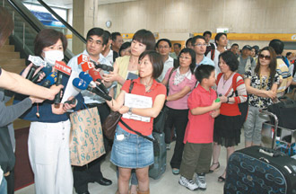 不料旅客這一等就等了將近二十四個(gè)小時(shí),直到昨天上午八時(shí)上航改以加班機(jī)FM80Y重新起飛,一百五十名旅客在起飛前情緒就已沸騰。飛機(jī)在上午十時(shí)三十分降落松山機(jī)場后,七十名旅客陸續(xù)下機(jī),仍有八十名旅客不肯下機(jī),要求民航主管部門及上航代表上機(jī)“給一個(gè)說法”。臺灣民航主管部門人員及航警緊急登機(jī)協(xié)調(diào),旅客在十一時(shí)十二分自動(dòng)下機(jī)。