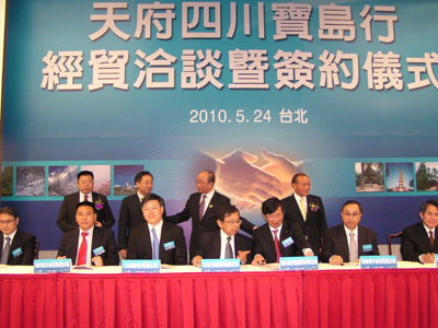 四川省工業經濟聯合會與工業總會、臺灣區電機電子工業同業公會等川臺經貿、旅游、農業、文化團體,上午共簽署5份合作協議。“貿協”下午在臺北國際會議中心舉辦川臺采購洽談會,預計安排上百場1對1洽談。