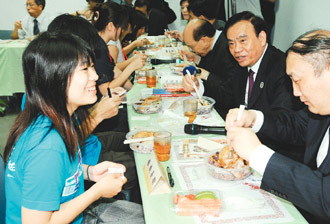 中新網6月11日電 據臺灣《聯合報》報道,浙江省長呂祖善昨天到臺大校園參訪,并與臺大學生共進午餐,他主動邀請一百五十名臺大學生到浙江游學,希望兩岸學生的交流能更緊密。