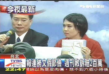 結果一審判決,《壹周刊》和社長裴偉,要各付100萬給連惠心,總共200萬元;但壹周刊不服再上訴,現(xiàn)在二審定讞,《壹周刊》確定得賠償200萬,全案不得再上訴。