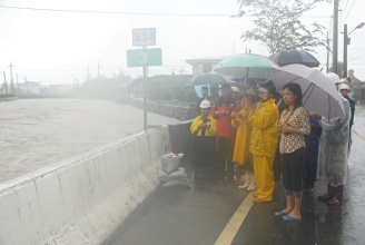 大水淹進了丸山路住家,縣長呂國華和鄉(xiāng)長張秋明挨家挨戶敲門勸住戶撤離。軍方出動一百五十多名人力,協(xié)助堆砂包,清淤塞。