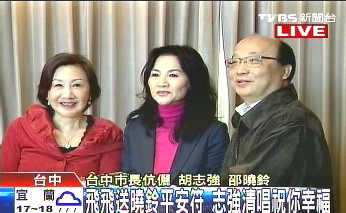 中新網1月29日電 據臺灣TVBS報道,帽子天后鳳飛飛為了明天演唱會,29日下午提前到臺中和市長胡志強、市長夫人邵曉鈴進行一場敘舊茶會。