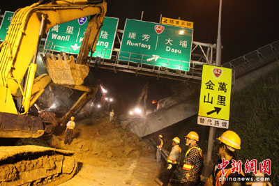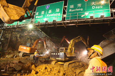 據悉,山崩地點范圍從北二高南下3.1公里至北上2.8公里處,土石覆蓋雙向路面的長度達300米,土石量總重超過20萬噸,南北交通中斷。