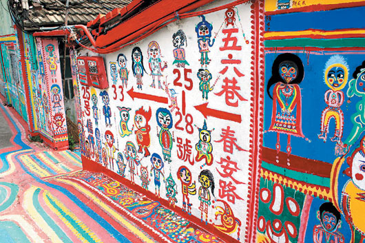 中新網11月2日電 據臺灣《聯合報》報道,臺中有一座奇特的老舊眷村,不同于一般眷村的灰暗破敗,這座眷村充滿了鮮艷的線條與色彩,因此被稱作“彩虹眷村”!安屎缇齑濉庇腥缫蛔鶋艋玫纳衿婺Щ檬澜纾S多人前往拍照欣賞,每到周末更是人山人海,擠滿好奇的民眾,大家對這座彩虹般的眷村都嘖嘖稱奇!