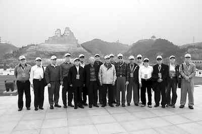 臺退役將領在黃河風景區炎黃二帝巨像前合影