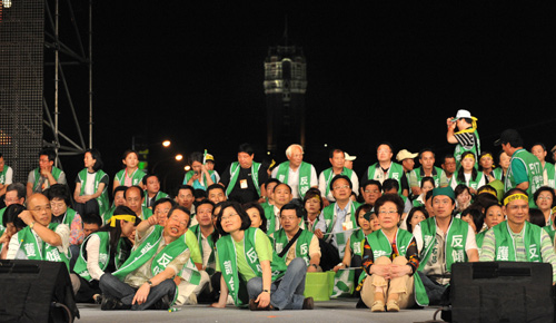 凌晨靜坐民眾逐漸散去,至上午仍在凱道群眾大約剩上千人,主舞臺區(qū)有民進黨主席蔡英文、呂秀蓮、前“行政院長”謝長廷、蘇貞昌等人。