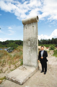 據(jù)“中央社”報(bào)道,今天是柏林圍墻倒塌20周年,德國(guó)歐柏哈佛縣今年4月致贈(zèng)臺(tái)灣一塊柏林圍墻遺跡。王金平9日上午在臺(tái)北出席遺跡揭幕典禮,接受媒體訪問時(shí)作出上述表示。