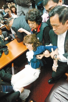 中新網4月22日電 據臺灣“今日新聞”報道,臺“立法院教育文化委員會”21日上午因為審查陸生來臺相關法案,爆發藍綠“立委”激烈肢體沖突,會議主席趙麗云昏倒,國民黨“立委”協助送臺大醫院。對于被綠營質疑指使趙麗云裝昏,國民黨“立委”林滄敏22日上午喊冤,“不能這樣惡意栽贓!”“對我來講有什么好處?”
