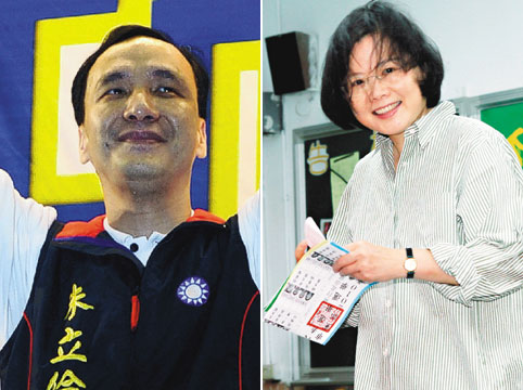 新北市長參選人底定,民進黨將由黨主席蔡英文(右)御駕親征,對上“前行政院副院長”朱立倫(左),兩人競爭不但攸關藍綠“五都”勝敗,更將牽動二○一二年“大選”。圖片來源:聯合報