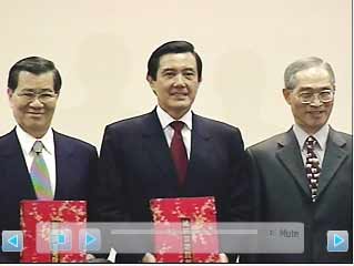 中新網(wǎng)3月31日電 大贏對手謝蘇配221萬票的臺灣地區(qū)領(lǐng)導(dǎo)人當(dāng)選人馬英九、蕭萬長今日(31日)上午10點(diǎn)在國民黨中央接下由“中央選舉委員會”主委張政雄親自致送的“當(dāng)選證書”。