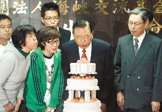 據“中央社”報道,海基會今天為會內10月到12月“壽星”辦慶生會,江丙坤與副董事長兼秘書長高孔廉都是“壽星”之一。