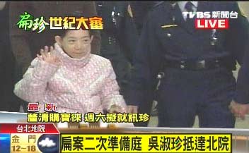 中新網3月3日電 據臺灣TVBS報道,陳水扁家族弊案今日再度開庭,陳水扁夫人吳淑珍今天下午再次出庭,她已經于2點10分左右抵達臺北地方法院。