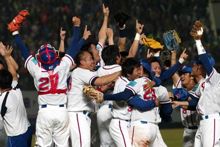 臺棒球隊取得進(jìn)軍北京奧運關(guān)鍵戰(zhàn) 球迷打出字幅