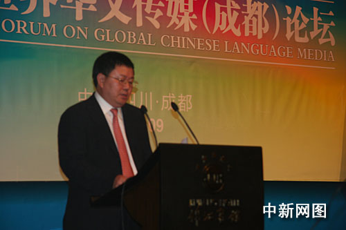 成都市人民政府副市長何華章主持第四屆世界華文傳媒論壇閉幕式。