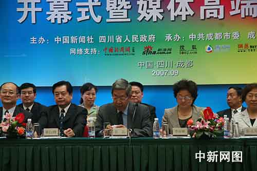 出席今天開幕式的領(lǐng)導(dǎo)有:全國人大常委會副委員長許嘉璐先生,國務(wù)院僑辦主任李海峰女士,國務(wù)院僑辦副主任趙陽先生,國務(wù)院僑辦副主任馬儒沛先生,國務(wù)院臺辦副主任葉克冬先生,北京奧組委副主席屠銘德先生,北京奧組委新聞宣傳部常務(wù)副部長王惠女士,國務(wù)院僑辦文宣司司長劉輝先生,國務(wù)院僑辦政研司司長王曉萍女士,中國新聞社社長郭招金先生,中國新聞社總編輯劉北憲先生;四川省委副書記、省長蔣巨峰先生,省政協(xié)主席秦玉琴女士,省委常委、副省長魏宏先生,省委常委、成都市委書記李春城先生,省委常委李登菊女士,省委常委、宣傳部長黃新初先生,省人大常委會副主任韓忠信先生,省政府秘書長王東州先生,省政府副秘書長喬仁毅先生;中共成都市委副書記、市長葛紅林先生,市人大主任駱隆森先生,以及成都市委和市人大有關(guān)領(lǐng)導(dǎo),再一次歡迎你們!