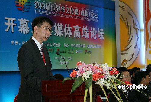 尊敬的許嘉璐副委員長、尊敬的各位來賓、各位朋友, 女士們、先生們: 大家上午好! 在丹桂飄香的金秋時節(jié),由四川省人民政府和中國新聞社共同主辦、成都市人民政府承辦的"第四屆世界華文傳媒論壇"在美麗的成都隆重開幕。我謹(jǐn)代表國務(wù)院僑務(wù)辦公室,對蒞臨論壇的各位領(lǐng)導(dǎo)、各位嘉賓和從海內(nèi)外云集蓉城的華文傳媒界的朋友們表示熱烈的歡迎。向為本屆論壇順利舉辦做出巨大貢獻(xiàn)的四川省人民政府和成都市人民政府表示衷心的感謝。 生活在世界五大洲的幾千萬海外同胞,是中華文化的傳播者和中國形象的展示者。長期以來,一代又一代華僑華人,身居海外、情系桑梓,自強(qiáng)不息、艱苦創(chuàng)業(yè),在各個領(lǐng)域取得了杰出成就,為實現(xiàn)中華民族的獨立和復(fù)興、推動中國改革開放和現(xiàn)代化建設(shè)、促進(jìn)中國和平統(tǒng)一大業(yè)、增進(jìn)中國人民同世界各國人民的相互了解與友誼,做出了不可磨滅的重要貢獻(xiàn)。在這個過程中,分布在華僑華人聚居國家的眾多華文媒體,也通過不懈的努力和拼搏奮斗,在服務(wù)僑胞,促進(jìn)華僑華人與當(dāng)?shù)刂髁魃鐣臏贤ㄅc融合,宣傳介紹中國的發(fā)展進(jìn)步,弘揚中華優(yōu)秀文化,推動所在國與中國的了解與交流等方面做出了突出成績。在這里,我作為中國政府主管僑務(wù)工作的部門負(fù)責(zé)人和華僑華人朋友的娘家人,要向從五大洲遠(yuǎn)道而來的華文傳媒界的朋友們表示衷心的感謝,并希望通過你們向生活在海外的廣大華僑華人朋友們表示最誠摯的問候。