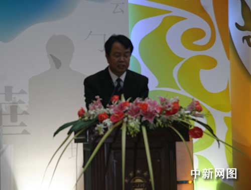 請國內(nèi)媒體代表、人民日報海外版總編輯詹國樞致辭。
