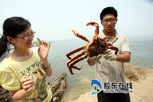 “一只螃蟹6斤重,展開之后一米長,和章魚哥一樣,擅長預(yù)測……。”負(fù)責(zé)看養(yǎng)帝王蟹的煙臺市民小魏這樣告訴記者。7月13日,本網(wǎng)以《好大一只帝王蟹 重3公斤價值1700元》為題報道了市民矯先生從俄羅斯購進(jìn)的大螃蟹,一時間吸引了眾多看稀奇的游客和市民。相隔不到一個星期,其中一只名叫“霸王”的超大螃蟹爆出猛料,因為它要向世界杯明星保羅章魚哥發(fā)出挑戰(zhàn),預(yù)測所有魯能比賽。