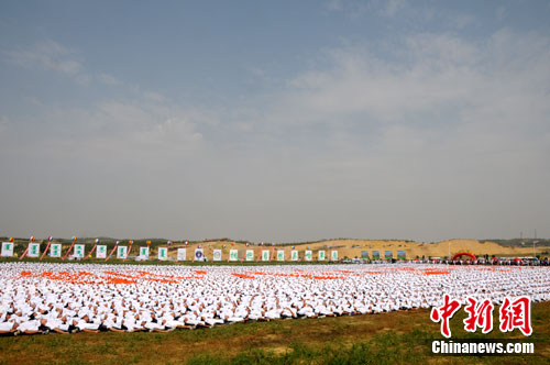 本次“萬(wàn)人多米諾”活動(dòng),以“擁抱自然,親吻草原”為主題,旨在宣揚(yáng)和倡導(dǎo)團(tuán)結(jié)向上的精神和綠色、環(huán)保、低碳的生活理念。來(lái)自鄂爾多斯市多所中學(xué)的學(xué)生和東勝區(qū)直各部門(mén)的在職干部10267人參加了今天的活動(dòng)。他們按陣形和服裝顏色排列組成“鄂爾多斯美”的圖案,其中“美”字是用蒙文組成的,充分體現(xiàn)了民族特色。