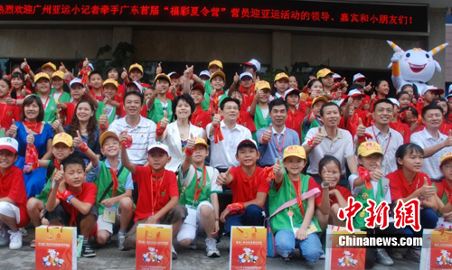 中新網廣州8月19日電 (記者 莫非 程景偉)“這是一次令人難忘的活動,我們了解有關亞運的知識、參觀亞運訓練場,還了解了運動員如何通過訓練,換來好成績。”來自粵北韶關的留守兒童劉梅霞告訴記者。19日下午,由廣東團省委、廣東省福彩發行中心等單位聯合舉辦的“我為亞運添光彩”——廣州亞運小記者牽手廣東“福彩夏令營”營員迎亞運活動在冠軍訓練營——廣州體育職業技術學院舉行。