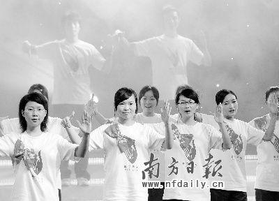 大學生們晚會現場學習手語,為亞運會到來做全面準備。南方日報記者王輝攝