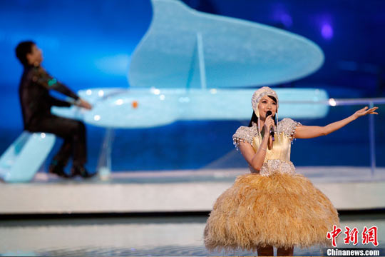 在這一段節目中,郎朗與章子怡爭做主角,相互“飆歌”。這首美妙的音樂名為《時光》,浪漫的旋律如夢似幻,郎朗指下藍色的鋼琴變成了一個時間的機器,隨著音樂穿越時空。鋼琴演奏與章子怡悅耳的演唱交響在一起,花樣游泳演員伴著她的歌聲在水中翩翩起舞,擺出各種各樣美麗的花朵造型。