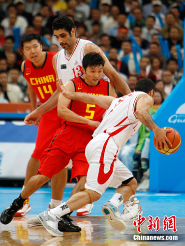 此后,丁錦輝連續兩個三分球命中,但是這并沒有幫助中國男籃找到手感。首節,中國隊以8比12落后,8分是中國隊征戰亞運會以來的單節最低分。