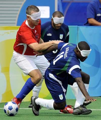 五人制(盲人)足球比賽是以攻破對方球門得分為目的而進行的同場攻守對抗項目。每隊由5名場上隊員和5名替補隊員組成,其中包括守門員和替補守門員各1名。除守門員外,其他隊員都為盲人。只有守門員可以在規定的區域內用手觸球。比賽中,進攻方目標是把球踢進對方球門得分,而防守方則是盡力阻止對方得分。