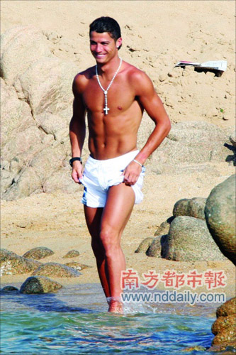 C羅海灘漫步秀完美身材 明星效應已逼小貝(圖)