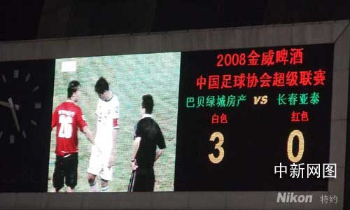 浙江巴貝綠城3比0戰勝長春亞泰,獲得首個主場勝利。