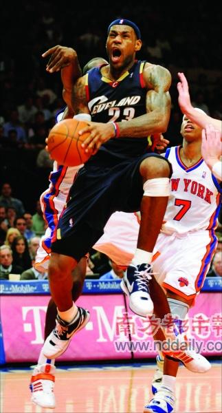 不過兩天前比賽的最后,麥迪遜花園球館里滿場響起“MVP”的呼聲,昨天的“皇帝”卻沒能享受如此待遇,雖然紐約人依舊對明年詹姆斯的加盟充滿期待,但主隊昨天直至最后仍未放棄獲勝希望讓主場球迷無法倒戈,終場前1分鐘尼克斯還僅以100比102落后兩分。可惜詹姆斯隨后以個人第11次助攻幫助伊爾戈斯卡斯上籃成功,終場前22秒又搶下關鍵籃板迫使對手犯規,兩罰兩中完成了自己的得分50+,尼克斯無力翻盤。