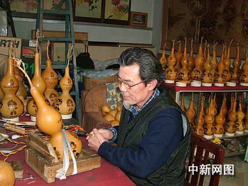 河北民間烙畫藝人烙繪“葫蘆福娃”迎奧運(圖)