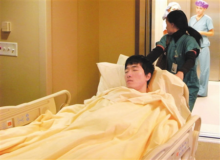 手術(shù)順利結(jié)束,醫(yī)生為劉翔套上護(hù)具。 圖片來源:華西都市報(bào)