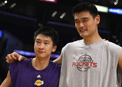 與湖人的比賽,中國(guó)記者擠滿了斯臺(tái)普斯球館的記者專區(qū),大家都想見(jiàn)證新賽季姚明和孫悅領(lǐng)銜的第一場(chǎng)中國(guó)德比!跋M苌蠄(chǎng),我想和他在NBA賽場(chǎng)上拼一下。以前看到孫悅的時(shí)候,他總是穿著國(guó)家隊(duì)的隊(duì)服,現(xiàn)在看他穿上湖人隊(duì)服,我會(huì)有一些不適應(yīng)!币γ餍χf(shuō)道。不過(guò)“禪師”杰克遜沒(méi)有替姚明達(dá)成心愿,孫悅繼續(xù)“把板凳坐穿”,“中國(guó)德比”再次成空。