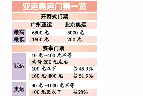 對此,許瑞生說:“比北京奧運(yùn)會(huì)高我想那只是個(gè)別座位,低票價(jià)、服務(wù)更多大眾是我們的重要目標(biāo)。廣州亞運(yùn)會(huì)大部分門票在10元到200元,這部分是我們主打的。”