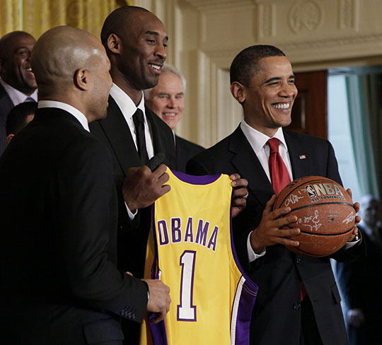 在去年的總決賽里,湖人擊敗了魔術拿到了球隊隊史第15個總冠軍。對此奧巴馬表示他看到了場上湖人隊的表現感到無比高興,而在去年沒有誰能超越湖人隊的卓越表現。