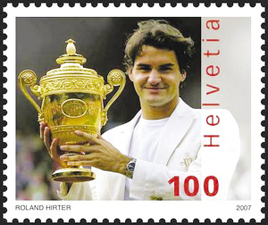 2007年4月,打破康納斯連續(xù)160周排名第一的世界紀(jì)錄之后,費(fèi)德勒家鄉(xiāng)的瑞士郵政局就發(fā)行了一套以“費(fèi)德勒”名字命名的郵票,嘉獎(jiǎng)他為國(guó)家所取得的榮譽(yù),他也因此成為首位在世就“登上”瑞士郵票的人。