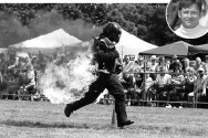 之后,工作人員打開一大桶汽油,把它澆在凱特的身上。激動人心的時刻來了,工作人員拿出打火機,現場所有的人都屏住了呼吸。“轟!”一團熊熊燃燒的大火迅速吞噬了凱特。在觀眾的尖叫聲中,凱特拔腿就跑……他跑得越快,火就燒得越旺,看起來就像個“火球”在滾動。