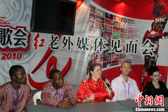 中新網南昌7月10日電(劉占昆)2010中國紅歌會突圍戰即將全面打響,10日下午,闖進全國120強選手中的五位老外率先亮相在媒體見面會上,他們不僅現場唱起紅歌,還相互調侃耍寶。