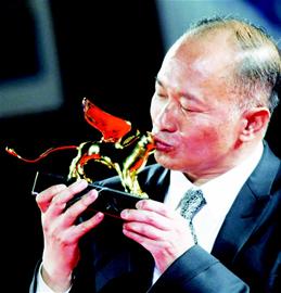 儀式正式開始后,電影宮首先播放了一段節(jié)奏明快的短片,將吳宇森從影數(shù)十年拍攝電影的精彩鏡頭剪輯在一起。徐克現(xiàn)場改編了他與吳宇森合作的經(jīng)典作品《英雄本色》里的臺詞來向吳宇森致敬,“我要爭一口氣,不是想證明我了不起,我是想告訴人家,我只想得到我應(yīng)該得到的東西。”隨后吳宇森上臺,接過閃閃發(fā)光的金獅獎杯,他眼含淚光,連連鞠躬致意。在致辭中他對所有支持他、幫助他的親朋好友致以誠摯謝意:“小時候電影只是我的一個瘋狂夢想,沒想到如今卻成為現(xiàn)實,我是個幸運的人……母親的話常在我耳畔響起,如果堅信某事,就要堅持到底。” (小魚)