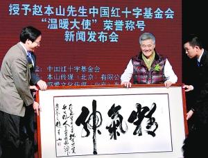 儀式現(xiàn)場,趙本山還向紅十字基金會捐贈了一幅自己的書法作品,雙方商定這件作品將于11月4日在“2010馬拉多納溫暖中國行”的慈善嘉年華晚會上進(jìn)行拍賣,拍賣所得用于建立溫暖中國行動定點(diǎn)醫(yī)院和貧困腫瘤患者的救治。溫暖中國行動辦公室主任齊中祥向趙本山遞交了這場慈善嘉年華的邀請函,趙本山愉快地接受了邀請,并表示還將攜弟子現(xiàn)場奉獻(xiàn)精彩節(jié)目,屆時,“馬大帥”趙本山與另外一位“馬大帥”馬拉多納將相會于北京。記者金力維