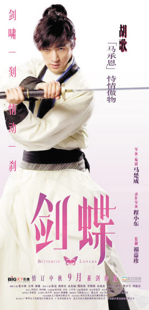 電影《劍蝶》海報昨日曝光,3位主人公一起亮相,吳尊飾“一劍情深的梁仲山”,蔡卓妍飾“一愛無悔的祝言之”,胡歌飾“恃情傲物的馬承恩”。而此片也推出了漫畫繪本,吳尊與阿Sa的造型像真度極高,連吳尊看過后也大贊畫功精美,還告訴阿Sa,漫畫造型比他真人更帥,他打算買幾十本送給朋友與文萊的家人。