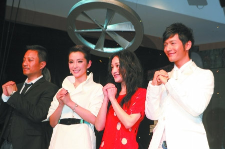 張涵予、李冰冰、周迅和黃曉明(從左至右),其中周迅的衣服最惹眼 劇組供圖