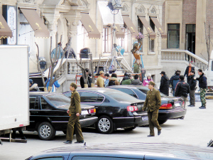 在拍攝現(xiàn)場(chǎng),記者尋覓了半天也沒(méi)發(fā)現(xiàn)片中幾位大牌的身影,通過(guò)詢問(wèn)一位在現(xiàn)場(chǎng)負(fù)責(zé)監(jiān)督工作的劇組人員得知,早晨7點(diǎn)劇組就準(zhǔn)時(shí)到達(dá)一宮的拍攝現(xiàn)場(chǎng),無(wú)論是燈光、道具還是化妝師全部準(zhǔn)備就緒,隨時(shí)可以開工,但原定拍攝的主演周迅卻遲遲不見(jiàn)蹤影。記者還從幾位配角和群演的口中聽到了不少的抱怨,幾個(gè)群眾演員分別向記者介紹,“我們已經(jīng)在這兒站了一上午了,從早晨就化好妝了,一直等著周迅也不來(lái)。”據(jù)他們講,等明星到場(chǎng),不是一次兩次了,“誰(shuí)讓人家是大牌兒明星呢,我們這樣的群眾演員只有等著的份兒了。”據(jù)介紹,當(dāng)天他們要拍攝的都是一些需要配角串場(chǎng)的鏡頭,比如,走在樓道里和主演打個(gè)招呼,遞個(gè)文件,或者坐在辦公室里打電報(bào)、接電話等鏡頭,整場(chǎng)戲他們都不會(huì)和主演有直接交流或?qū)υ捙_(tái)詞,對(duì)于這樣的演出,這些配角和群眾演員依然樂(lè)此不疲,用他們的話說(shuō),能看到明星就已經(jīng)很滿足了,能和大牌兒明星近距離的演戲更是一種幸福。