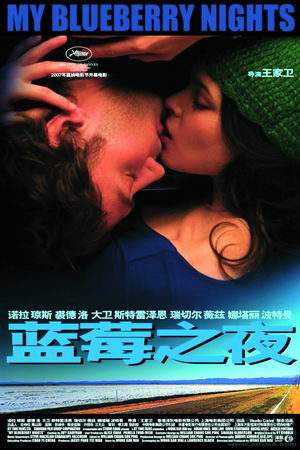 諾拉·瓊斯、裘德·洛、娜塔莉·波特曼、蕾切爾·薇姿、大衛·斯特雷澤恩……這些來自美國的流行爵士天后、好萊塢頭牌青春偶像、奧斯卡最佳女配角、威尼斯影帝,莫說同時出現在一部大片里了,就算單請任何一個來擔綱主演,都足以呼風喚雨,當然也身價不菲。但這一次,他(她)們竟在一部一點兒都不大的電影里聯袂奉獻夢幻組合,甚至不計片酬,只為能與某導演放任自由地耍上一次。這部講述一個失戀女孩兒穿越大半個美國的英語電影,名字叫作《藍莓之夜》。某導演=王家衛,他一再強調說:“這是一部中國電影。”該片于圣誕時分在內地全線上映,其配音演員包括姜文、鞏俐、趙薇、徐靜蕾、張震、董潔、田壯壯、洪晃……單從此幕后陣容看,亦算大腕云集,不輸任何一部國產大片。他們集體出動的原因同樣只因一個名字:王家衛。