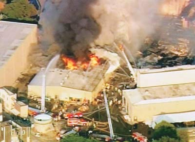 起火點是影城內(nèi)一個攝影棚,事發(fā)當時可能進行著拍攝工作,而且發(fā)生過至少一次爆炸。濃濃黑煙竄上數(shù)十米的高空形成蘑菇云,消防局一度派出直升機到現(xiàn)場上空灑水滅火。