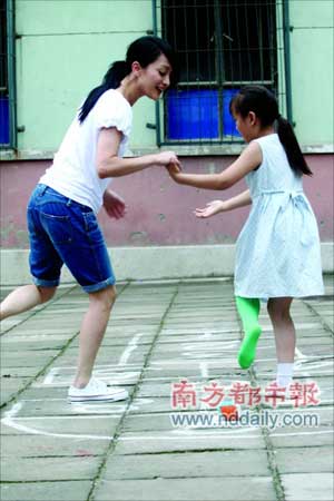 組圖:周迅拍攝公益片 與小演員玩"跳房子"(2)