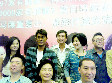 昨日下午杭州雨后天晴,如香港東方電影公司老總黃百鳴的心情,因為《家有喜事》系列電影在闊別銀幕11年之后,終于有機會制造《家有喜事2009》。昨天該片在杭州舉行了開機新聞發布會,主演吳君如、古天樂、黃百鳴、鄭中基、姚晨、郭濤等等一干明星全體出席。